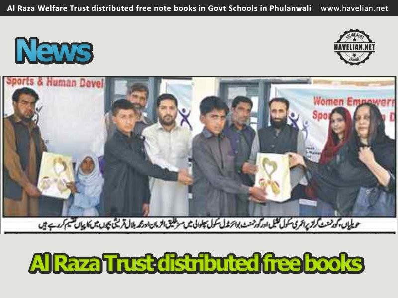 Al Raza Welfare Trust distributed free note books in Govt Schools in Phulanwali
