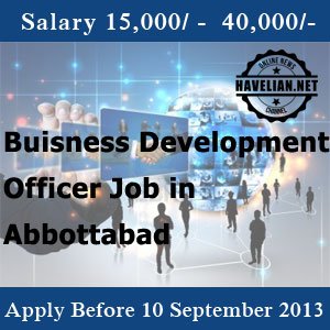 Posted by Havelian.Net | Page Views: 6930Business Development Officer required in Abbottabad.Salary: Rs 15,000 - 40,000/- per month.Last Date for submission of application is 10 September 2013
