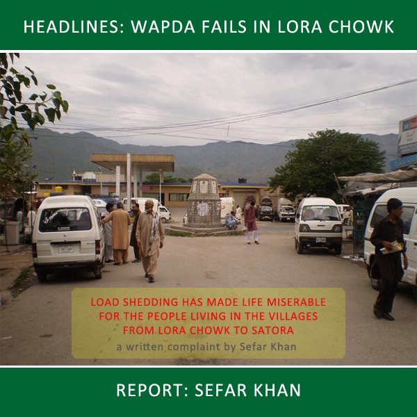 Posted by Havelian.Net | Page Views: 22037Press club Havelian: Sefar Khan in a written Statement said that people of village around Lora chowk and Satora are living a miserable life because of Load Shedding. Sefar Khan accused Line Superintendent Nasir for this situation.