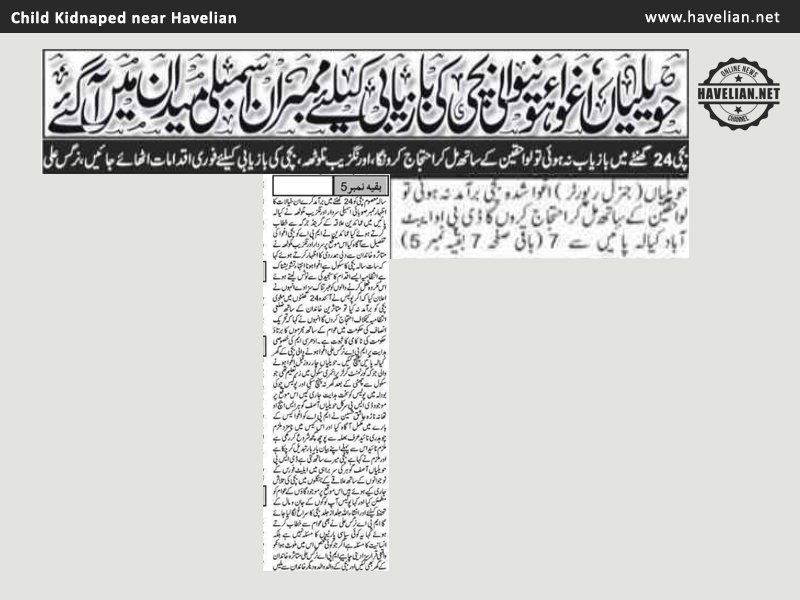 Havelian Members of Provincial Assembly came out in favour of reclamation of Kidnapped child