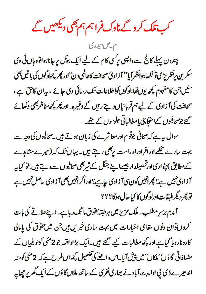 Kab talak karo ge Nawak faraham, Hum bhi dekhen ge, A must read article in Urdu by Muhammad Sabir Haidri in reference to recent Police operations.