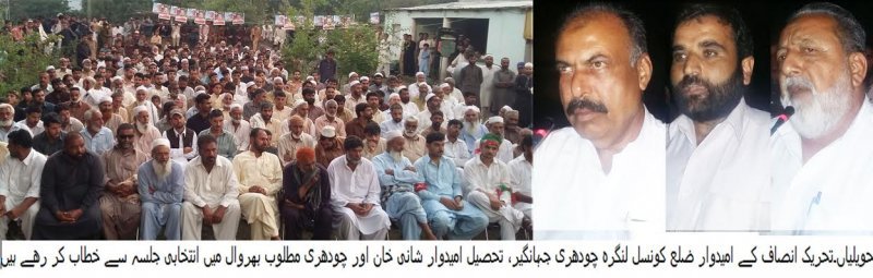 Posted by Nisar Khaksar | Page Views: 105639Havelian/ PML N tahseel Havelian na 3 roz qabil UC, Langra main intakhabi campain main apny mad e mukabil Ch.Jangeer k Qareebi villag Barwal main jalsa kr apni maqboliat dakhany ki koshash ki jis pr guzishta roz Ch.Jangeer na boyt bara jalsa kr k PML N ko masg dy dia k UC,Langra main N Leag ko sakht mukably ka samna karna ho ga.