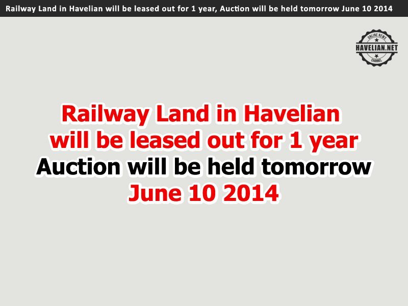 Railway Land in Havelian will be leased out for 1 year, Auction will be held on Tuesday June 10 2014