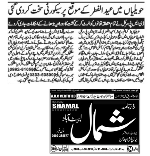 Posted by Havelian.Net | Page Views: 7414All police stations are notified to stay alert during Eid. Special measure are taken to prevent any security lapse in Havelian says DSP Circle.