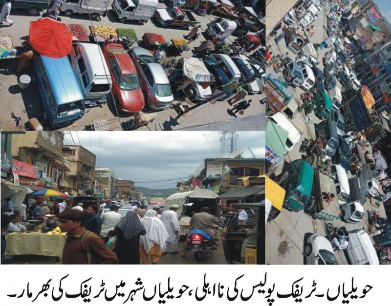 Posted by Syed Abbas Trimzy | Page Views: 36898حویلیاں، آئے روز ٹریفک مسائل میں اضافہ ہو رہا ہے اور افسوس کیساتھ ٹریفک پولیس اس کے سدباب میں مکمل ناکام دکھائی دے رہی ہے، بدترین ٹریفک جام، پیدل چلنے والوں کے لیے سخت اذیت۔۔ کوئی پرسان حال نہیں